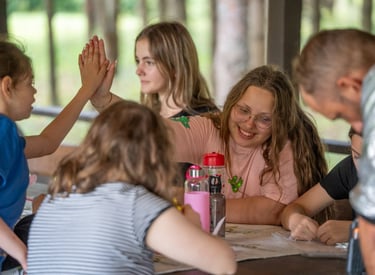 Mūsų vasaros stovyklos tai unikali erdvė, kurioje susitinka žmonės su negalia ir sveikieji. Čia gimsta draugystės, palaikymas ir tikrosios bendrystės jausmas. Mes tikime, kad integracija vyksta ne per teoriją, o per patirtį ir bendrą buvimą, veiklos ir bendri iššūkiai keičia požiūrį tiek vaikams, tiek suaugusiems.